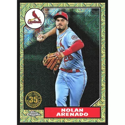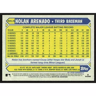 This is a 2022 Topps '87 Silver Pack Chrome Nolan Arenado baseball card. The card is #T87C-75 and pictures show condition.