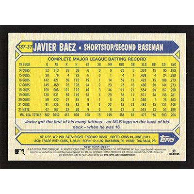 This is a 2022 Topps '87 Javier Baez baseball card. The card is #T87-37 and pictures show condition.