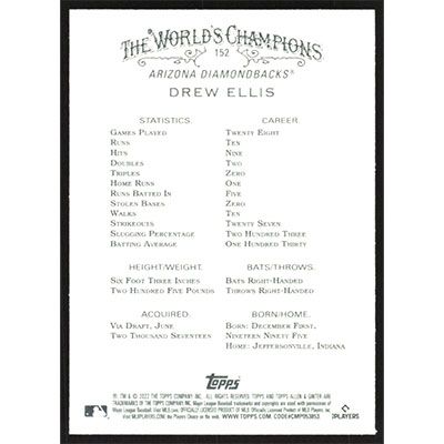 This is a 2022 Topps Allen & Ginter Drew Ellis baseball card. The card is #152 and pictures show condition. Team(s): Arizona Diamondbacks Rookie Card (RC)