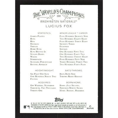 This is a 2022 Topps Allen Ginter Lucius Fox baseball card. The card is #300 and pictures show condition. Team(s): Washington Nationals Rookie Card (RC)
