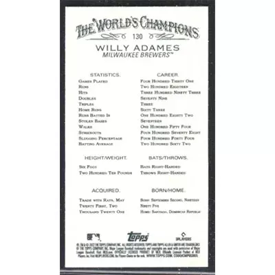 This is a 2022 Topps Allen & Ginter Mini Willy Adames baseball card. The card is #130 and pictures show condition.