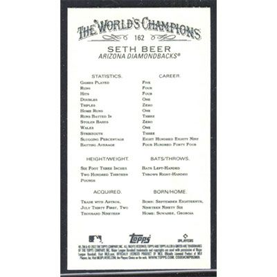 This is a 2022 Topps Allen & Ginter Mini Seth Beer baseball card. The card is #162 and pictures show condition. Team(s): Arizona Diamondbacks Rookie Card (RC)