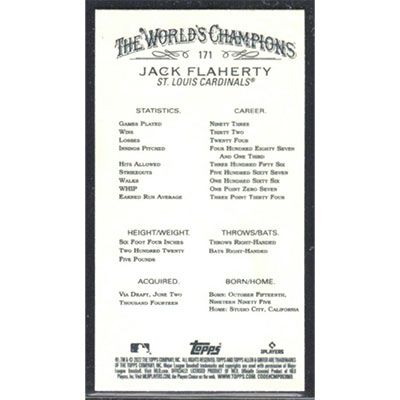 This is a 2022 Topps Allen & Ginter Mini Jack Flaherty baseball card. The card is #171 and pictures show condition.
