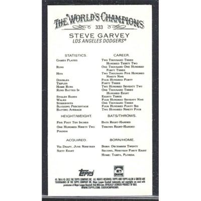 This is a 2022 Topps Allen & Ginter Mini Steve Garvey short print baseball card. The card is #333 and pictures show condition. Team(s): Los Angeles Dodgers