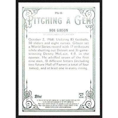 This is a 2022 Topps Allen & Ginter Pitching a Gem Bob Gibson baseball card. The card is #PAG-18 and pictures show condition. Team(s): St. Louis Cardinals