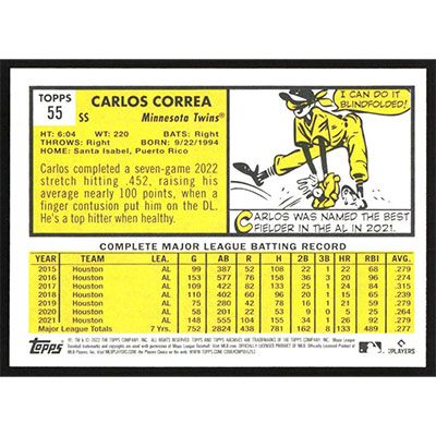 This is a 2022 Topps Archives Carlos Correa baseball card. The card is #55 and pictures show condition.