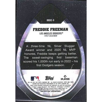 This is a 2022 Topps Chrome Ben Baller Ben's Diamond Die Cuts Freddie Freeman baseball card. The card is #BBDC-9 and pictures show condition. Team(s): Atlanta Braves