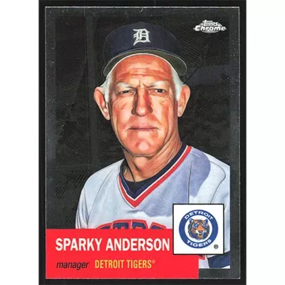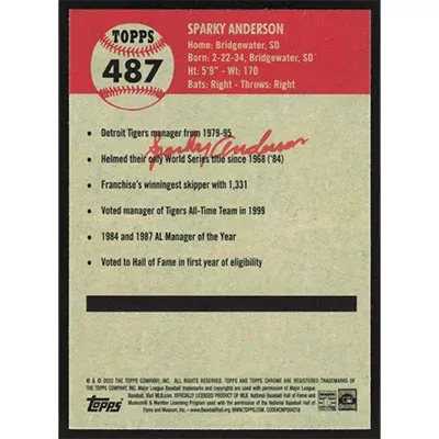 This is a 2022 Topps Chrome Platinum Anniversary Sparky Anderson baseball card. The card is #487 and pictures show condition.