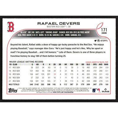 This is a 2022 Topps Chrome Prism Refractors Rafael Devers baseball card. The card is #171 and pictures show condition.