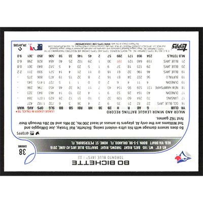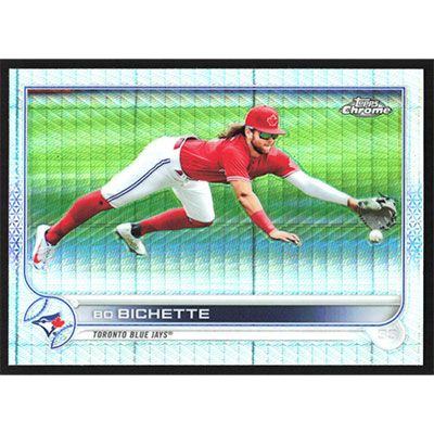 This is a 2022 Topps Chrome Prism Refractors Bo Bichette baseball card. The card is #38 and pictures show condition.