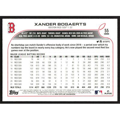 This is a 2022 Topps Chrome Sepia Refractors Xander Bogaerts baseball card. The card is #55 and pictures show condition.