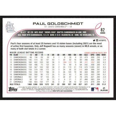 This is a 2022 Topps Chrome Sepia Refractors Paul Goldschmidt baseball card. The card is #82 and pictures show condition.