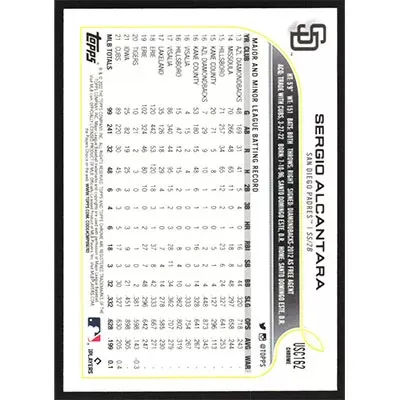 This is a 2022 Topps Chrome Update Sergio Alcantara baseball card. The card is #USC162 and pictures show condition.
