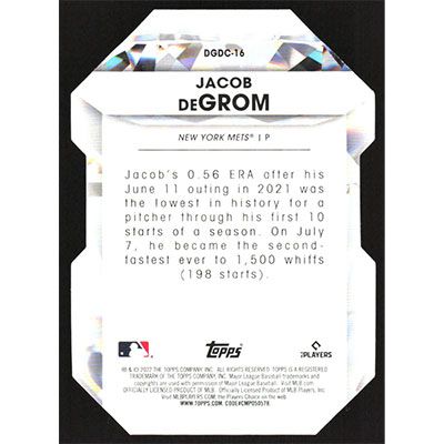 This is a 2022 Topps Diamond Greats Die Cuts Jacob deGrom baseball card. The card is #DGDC-16 and pictures show condition.