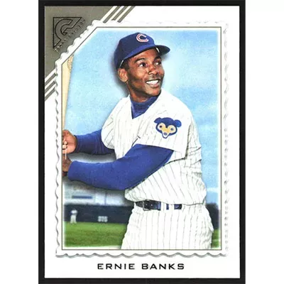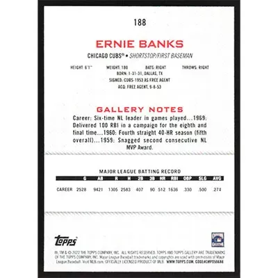 This is a 2022 Topps Gallery Ernie Banks baseball card. The card is #188 and pictures show condition.