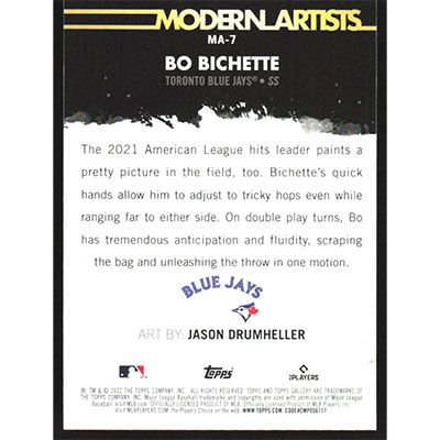 This is a 2022 Topps Gallery Modern Artists Bo Bichette baseball card. The card is #MA-7 and pictures show condition.