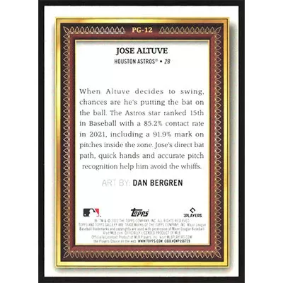 This is a 2022 Topps Gallery Portrait Gallery Jose Altuve baseball card. The card is #PG-12 and pictures show condition.