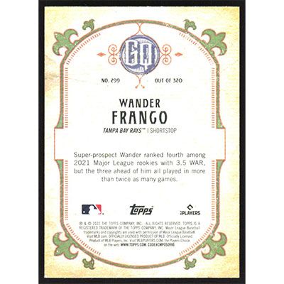 This is a 2022 Topps Gypsy Queen Wander Franco baseball card. The card is #299 and pictures show condition. Team(s): Tampa Bay Rays Rookie Card (RC)