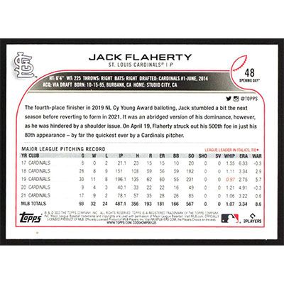 This is a 2022 Topps Opening Day Jack Flaherty baseball card. The card is #48 and pictures show condition.