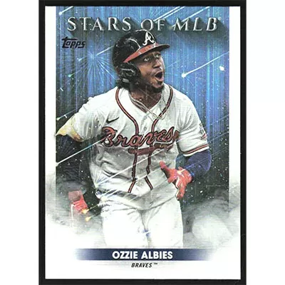 This is a 2022 Topps Stars of MLB Ozzie Albies baseball card. The card is #SMLB-35 and pictures show condition.