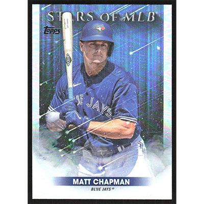 This is a 2022 Topps Stars of MLB Matt Chapman baseball card. The card is #SMLB-77 and pictures show condition.