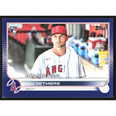 This is a 2022 Topps Update Royal Blue Reid Detmers Rookie Debut baseball card. The card is #US62 and pictures show condition. Team(s): Los Angeles Angels Rookie Card (RC)