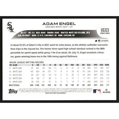 This is a 2022 Topps Update Adam Engel baseball card. The card is #US323 and pictures show condition.