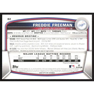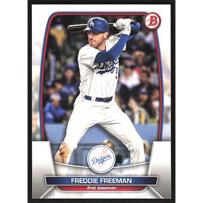 This is a 2023 Bowman Freddie Freeman baseball card. The card is #82 and pictures show condition.