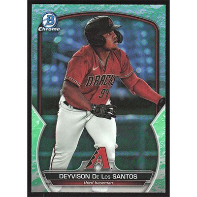 This is a 2023 Bowman Chrome Draft Lunar Glow Refractors Deyvison De Los Santos baseball card. The card is #BDC-36 and pictures show condition. Team(s): Arizona Diamondbacks