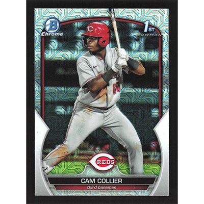 This is a 2023 Bowman Chrome Mega Box Prospects Cam Collier baseball card. The card is #BCP-125 and pictures show condition.