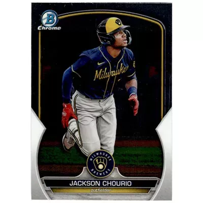 This is a 2023 Bowman Chrome Prospects Jackson Chourio baseball card. The card is #BCP-76 and is in NM-MT condition.