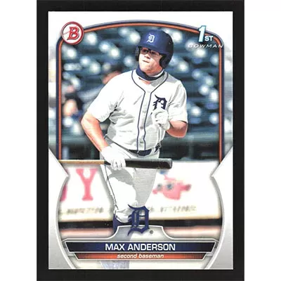 This is a 2023 Bowman Draft Max Anderson baseball card. The card is #BD-144 and pictures show condition.