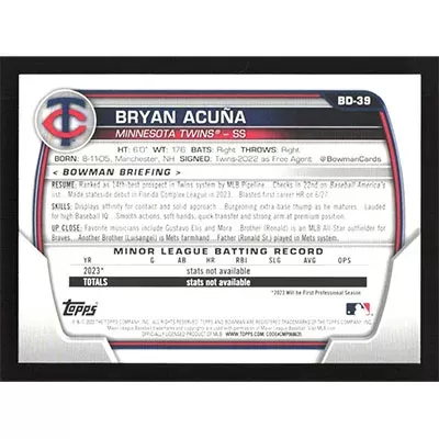 This is a 2023 Bowman Draft Bryan Acuña baseball card. The card is #BD-39 and pictures show condition.