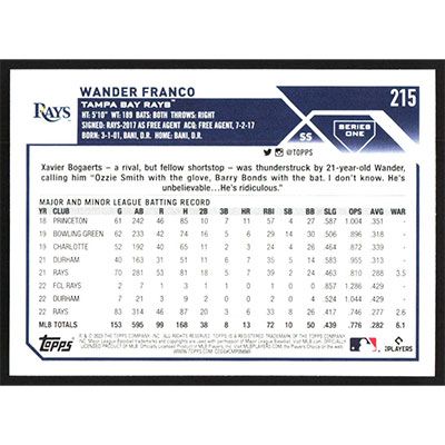 This is a 2023 Topps Wander Franco Future Stars baseball card. The card is #215 and pictures show condition.