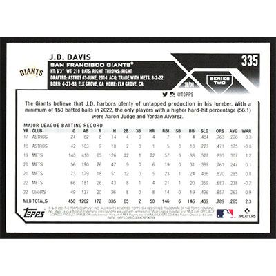 This is a 2023 Topps J.D. Davis baseball card. The card is #335 and pictures show condition.