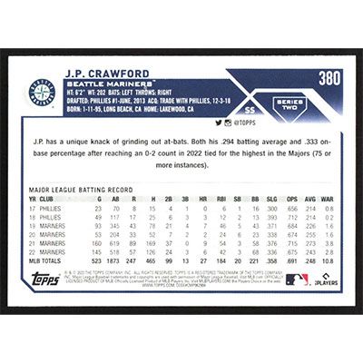 This is a 2023 Topps J.P. Crawford baseball card. The card is #380 and pictures show condition.