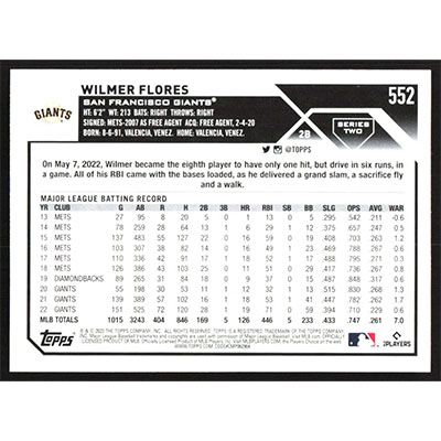 This is a 2023 Topps Wilmer Flores baseball card. The card is #552 and pictures show condition.