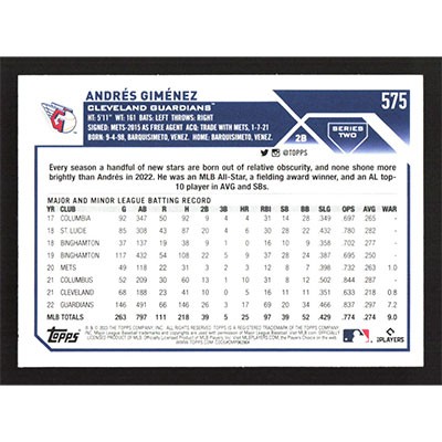 This is a 2023 Topps Andres Gimenez baseball card. The card is #575 and pictures show condition.