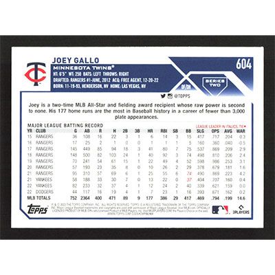 This is a 2023 Topps Joey Gallo baseball card. The card is #604 and pictures show condition.