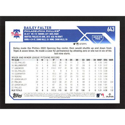 This is a 2023 Topps Bailey Falter baseball card. The card is #643 and pictures show condition.