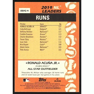 This is a 2023 Topps '88 All-Star Ronald Acuña Jr. baseball card. The card is #88AS-4 and pictures show condition.