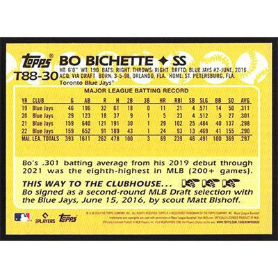 This is a 2023 Topps '88 Bo Bichette baseball card. The card is #T88-30 and pictures show condition.