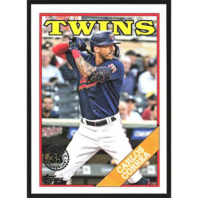 This is a 2023 Topps '88 Carlos Correa baseball card. The card is #T88-34 and pictures show condition.