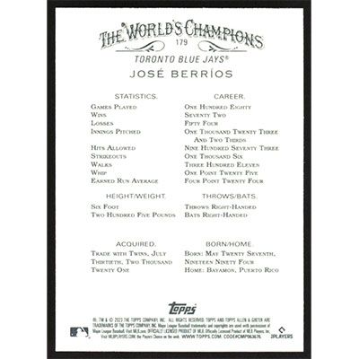 This is a 2023 Topps Allen & Ginter Jose Berrios baseball card. The card is #179 and pictures show condition.