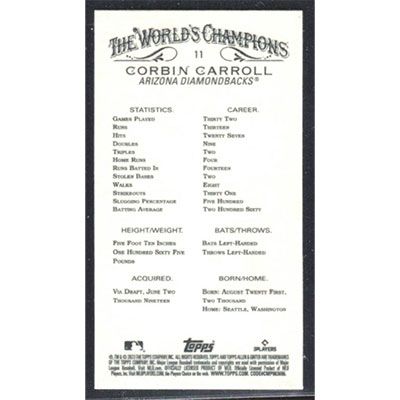 This is a 2023 Topps Allen & Ginter Mini Black Border Corbin Carroll baseball card. The card is #11 and pictures show condition. Team(s): Arizona Diamondbacks Rookie Card (RC)