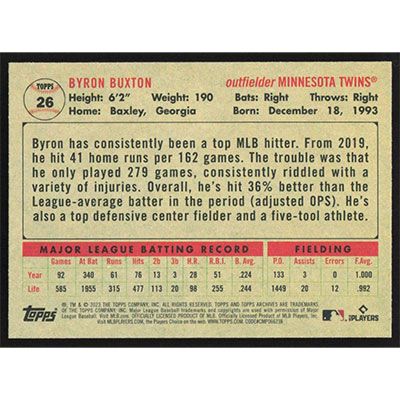 This is a 2023 Topps Archives Byron Buxton baseball card. The card is #26 and pictures show condition.