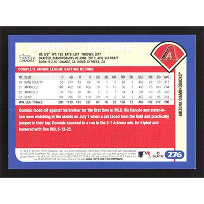 This is a 2023 Topps Archives Dominic Fletcher baseball card. The card is #276 and pictures show condition. Team(s): Arizona Diamondbacks Rookie Card (RC)