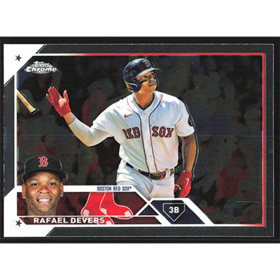 This is a 2023 Topps Chrome Rafael Devers baseball card. The card is #206 and pictures show condition.