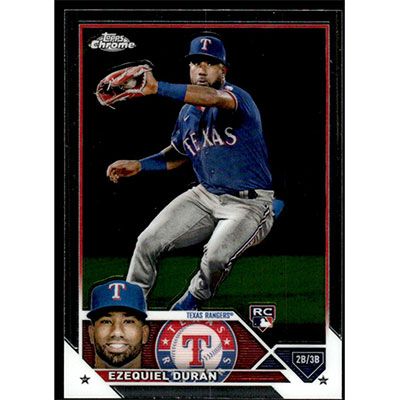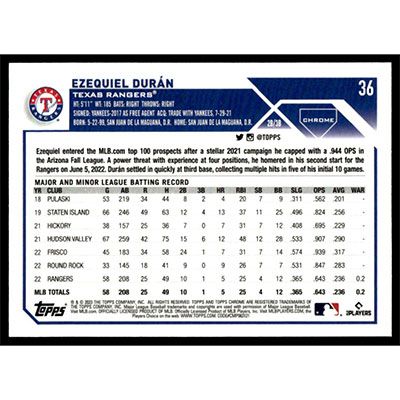 This is a 2023 Topps Chrome Ezequiel Duran baseball card. The card is #36 and pictures show condition.