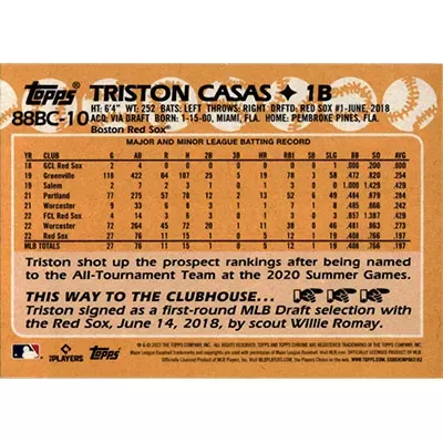 This is a 2023 Topps Chrome 88 Triston Casas baseball card. The card is #88BC-10 and is in NM-MT condition.